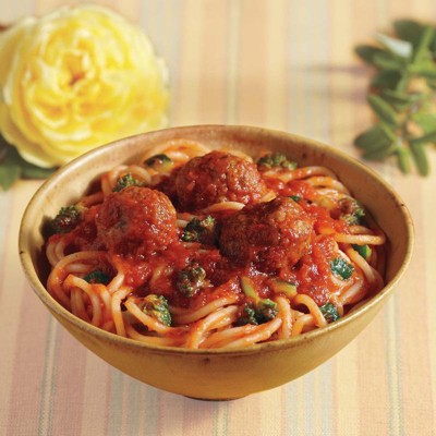 [This review was collected as part of a promotion.] This spaghetti was delicious, very fresh tasting. Meatballs were also great. Fed a family of 4 with some bread and salad on the side. Would definitely try again!