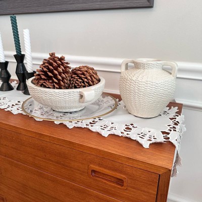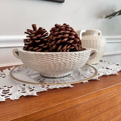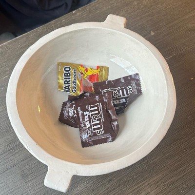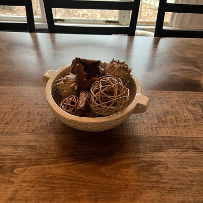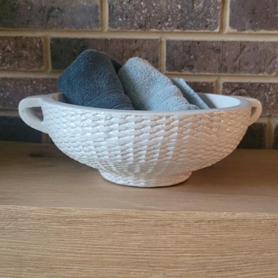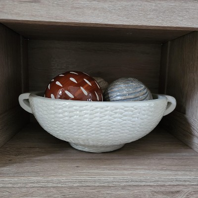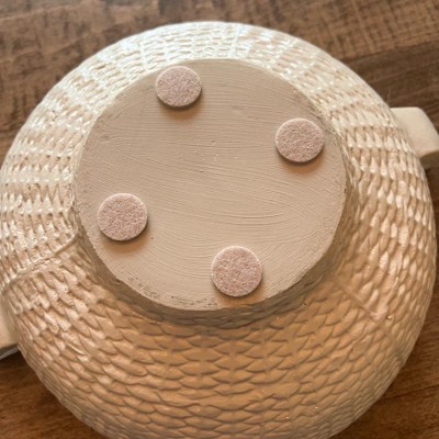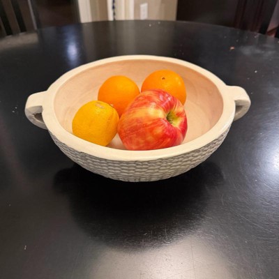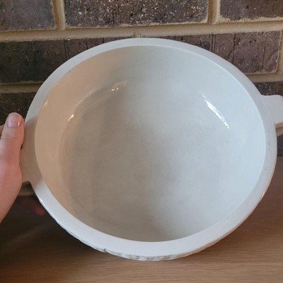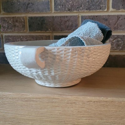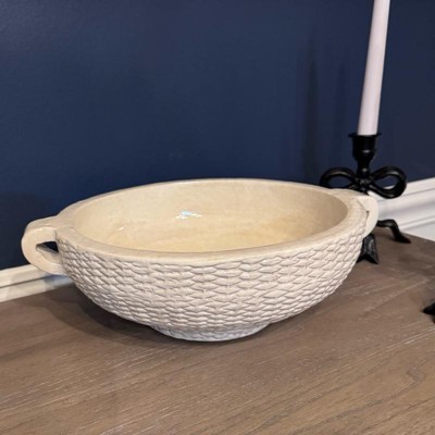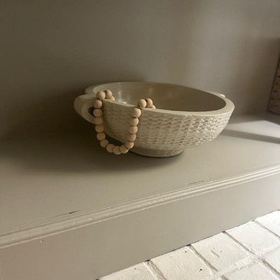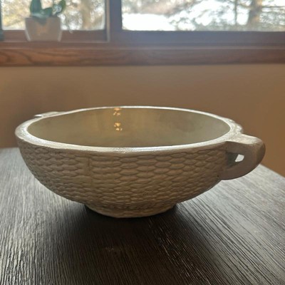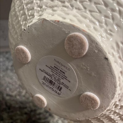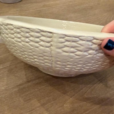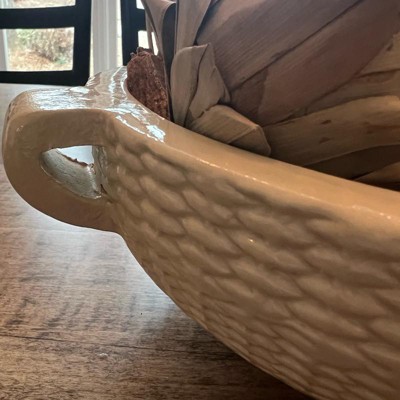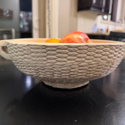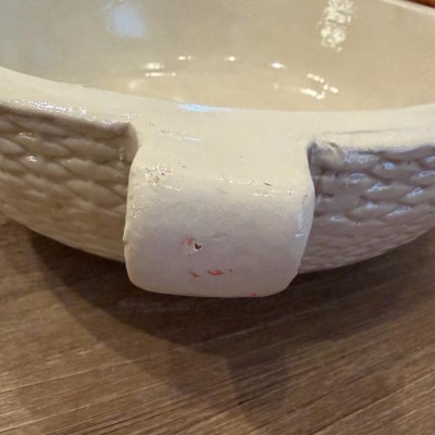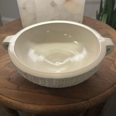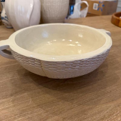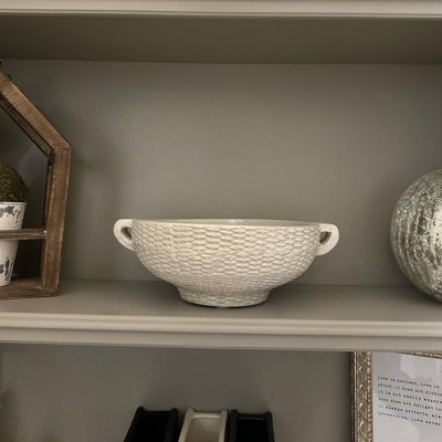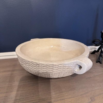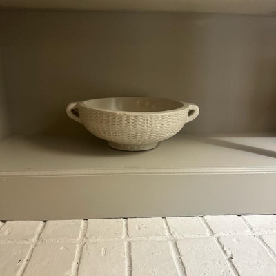 The Threshold Woven Textured Ceramic bowl in cream is a very aesthetically pleasing versatile bowl that can be used for decorative purposes on a beautiful shelf or it can even house a plant or your car keys. This piece is very sturdy and the handles on the bowl completely elevate the look of it. It is stunning!