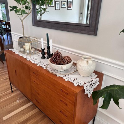 This is a ceramic bowl that is textured and ivory in color. It’s a great size for holding household items or faux “filler” on a dining table. We use this as a catch-all by the front door for keys and items that are brought in and out often. We’ve also used it to hold candy at the dining table as well.