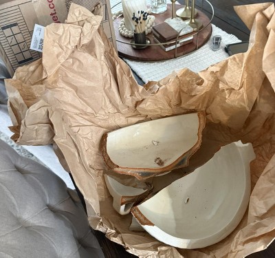 Item looks like it would be nice, but came shattered 2 times! Packaging terrible. A little paper in a big box that allowed bowl to be tossed around! Buy it in the store!!