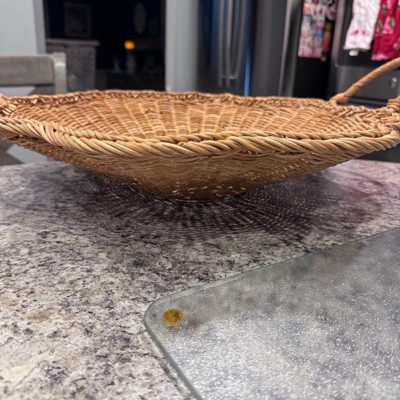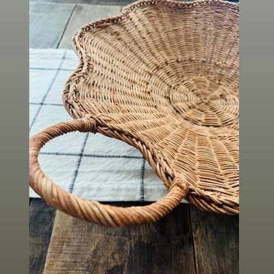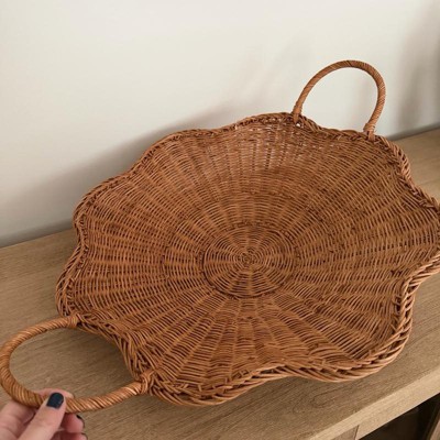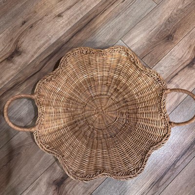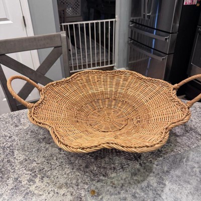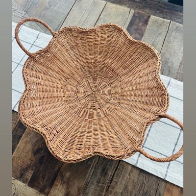 I purchased this scallop woven shallow bowl as a center piece for my table & loved it! This shallow bowl is woven from rattan & a scalloped rim to add earthy vibes to my space. Love the two side handles for easy portability. This would be great for anyone that would want to hold miscellaneous items or it would be cute to decorate with flowers etc & used as a center piece on a table. Highly recommend for the quality, style & value!