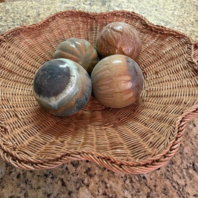 This bowl is so pretty in person. I only gave it 4 stars because I find it can tip a little easily if you put anything uneven in weight in it. If you put lemons for example, keep them all evenly spaced. Other than that I found the quality to be exceptional and the design is so beautiful. I also love that there are handles