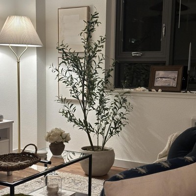 I absolutely LOVE this olive tree. I saw it in the store and couldn’t quit thinking about it. Lol. It’s so realistic looking and I like it doesn’t have fake olives on it. The height is perfect for my 8’ ceilings. All other olive trees I purchased and returned were either too fake looking or just too large for my space. It’s perfect nestled in the corner of my bedroom. The pot is also beautiful and blends perfectly with my decor. My store only had one left in stock which was the display and one of the branches was broke. I requested a discount and the store manager agreed to offer me a small discount, which I truly appreciate. I love it and have zero regrets. Highly recommend.