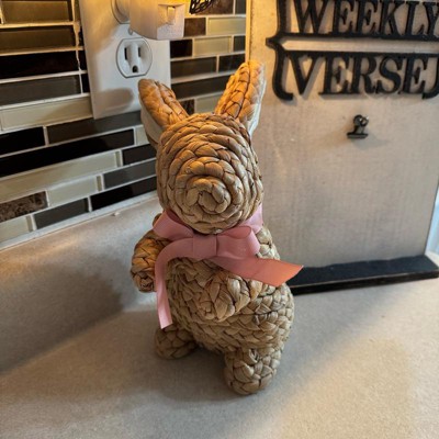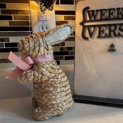 I purchased this bunny decoration to add to our Easter decor. It is such a simple piece and pairs well with our current decor to the point I could keep it up year round should I wish. I like the natural colored woven basket look to it with a small detail of a pink ribbon. It is very lightweight. The price point seems to be average.