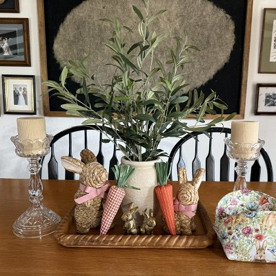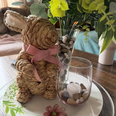 Such a beautifully simple decor piece for the spring and Easter holiday. This woven Easter bunny is sturdy and lightweight. It is perfect for an addition to a centerpiece or just added decoration on a shelf. The low price point on this piece by threshold makes it possible to add a couple to a big family table or just multiple for decorations.