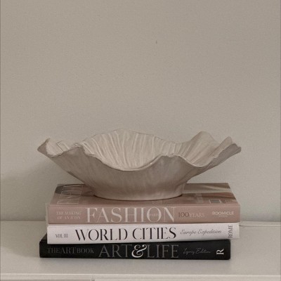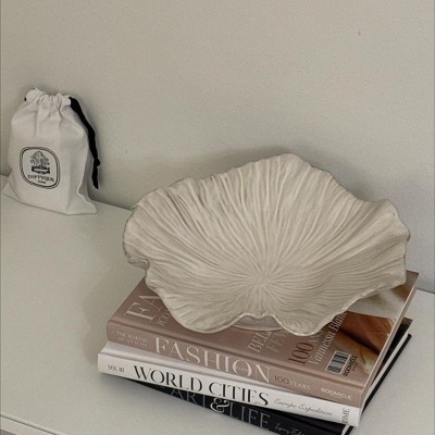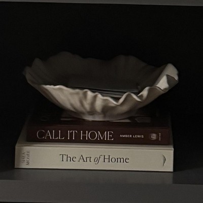 This ceramic bowl is such a lovely decorative piece. I have mine styled on top of a couple of coffee table books on my console table behind my couch and it looks perfect - the sculpted foliage detail adds just the right amount of texture and the cream color goes with everything. It feels intentional and elevated. A simple but beautiful addition to any styled surface.