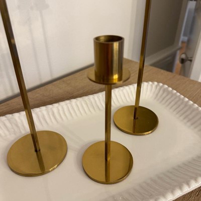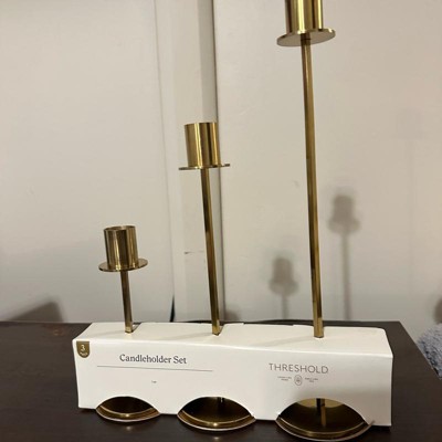 Set of 3 Minimal Gold Metal Taper Candle Holders - Threshold™ - 2 of 3Set of 3 Minimal Gold Metal Taper Candle Holders - Threshold™ - 3 of 3