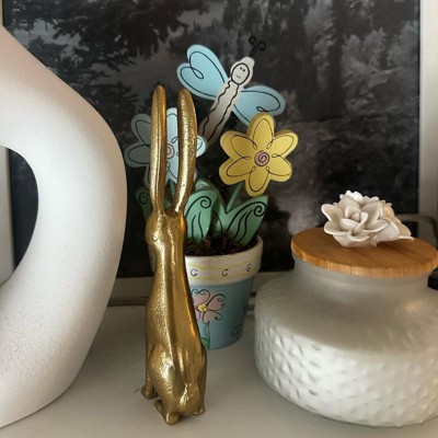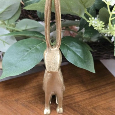 So if you don't look at the dimension, you might think this is bigger than it is , this is less than eight inches tall. It is made out of aluminum with a nice golden finish. It looks classy, so if you're not into the whole super cute easter type of decoration, this could be good be a good alternative.