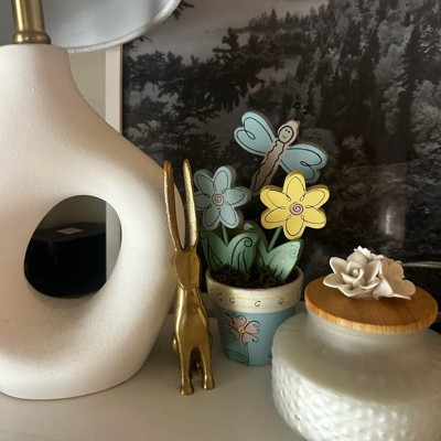 This is the most adorable little gold bunny decoration. I love the bunny on our built in cabinets of our living room as shown but we’ve also moved him around to our kitchen window and it really brings a smile and a bit of life to that window also which is really nice. I think it’s unique and could be used for much more than just Easter season.