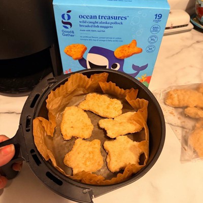These are the Good&Gather Ocean Treasures, wild caught Alaska pollock frozen breaded fish nuggets. These nuggets are crispy crunchy and so delicious. They have a light panko type breading with a nice portion of fish in each nugget. My kids love them plain right out of the air fryer. I love them cut up and made into a fish taco. These cook up quickly for a quick meal and taste great. If you are not sure if your family will love these, I recommend you try them!