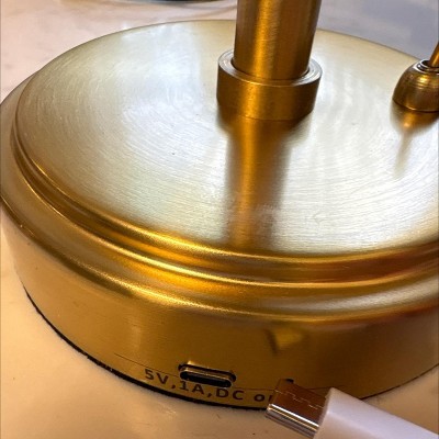 • A: Hi Bahar - Thank you for reaching out. We appreciate your interest in Portable Table Lamp Brass. It comes with a charging cable, so we recommend using the original charger instead of a different one to ensure longevity and safety. Happy Shopping!! - Emma