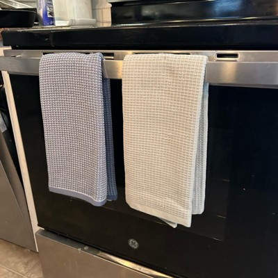 This set of two kitchen towels is a definite keeper! The towels are thicker and super absorbent, making them perfect for drying dishes or wiping down the counters. The waffle material was very soft and I liked that texture. The towels also have fabric sewn in so they can be hung on a hook but I was able to hang them from the oven and dishwasher.