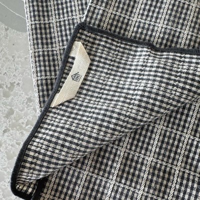 These towels add a bit of class to my kitchen! They are a nice and neutral color combination of black and tan. They are plaid and have a texture to them as well. I am not sure how they will come out of the dryer they do seem like they will be very wrinkly after laundering! They look really cute with other towels draped over them. They are absorbant as well and nice to dry hands or dishes with.