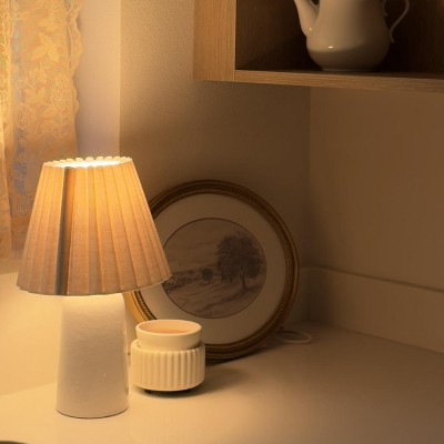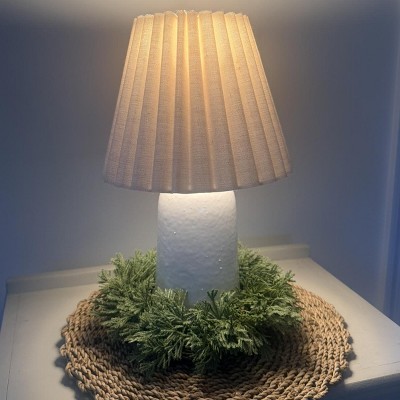 Such a cute lamp. I love the scalloped shade. It’s quite small. Perfect for a small nook.
