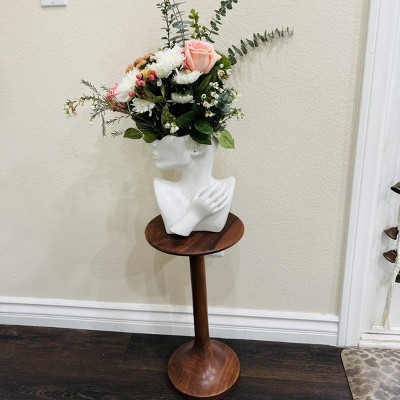 Bring sleek, modern style to your indoor space with this Wood Plant Stand Side Table from Hearth & Hand™ with Magnolia. Made of solid wood, this urn side table features a round tabletop with a long column and pedestal base for a chic look that blends effortlessly with any decor style and color palette. Place it beside your couch or armchair to hold a planter, vase or decorative items.