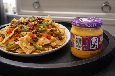 • Add a cheesy kick to your nachos with Taco Bell Mild Salsa Con Queso