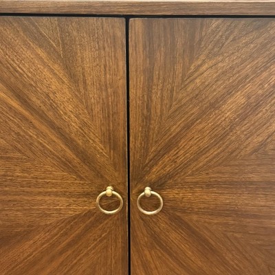 Looks decent from far away, up close you can tell it’s kind of cheap. Some worn out spots on top, cabinet pulls aren’t tight, gap in door, and some minor defects on the piece. Als the hardware is more of an antique bronze not brass. I think it’s about $100 overpriced