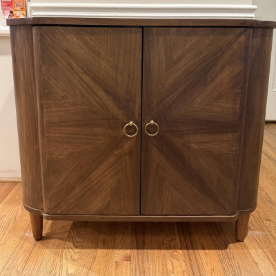 Love this piece! It feels really well made and looks higher end. The color is perfection! It has that elevated vintage look. The inside has a lot of storage space. The only complaint is the door adjustment is hard and we couldn’t get it perfect so there’s a little gap on the side but not noticeable where we put the cabinet.
