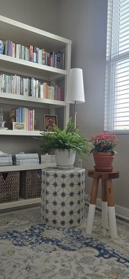 Love this unique blue/gray accent table. Adds a fun element next to my window bench.