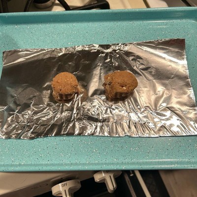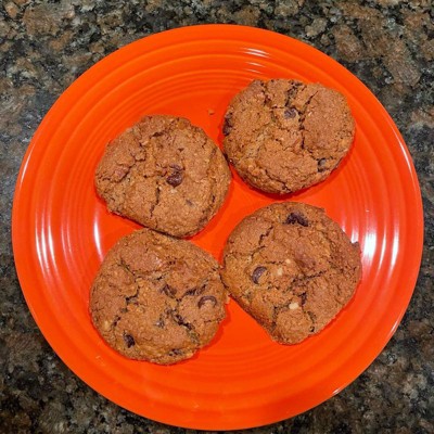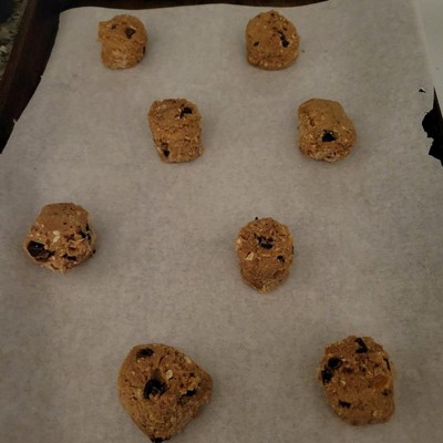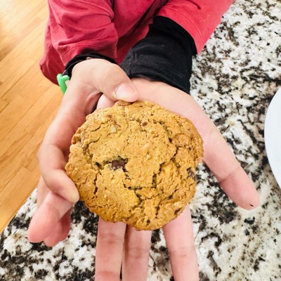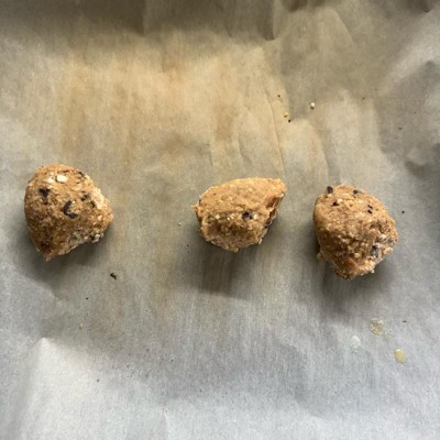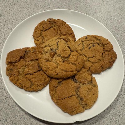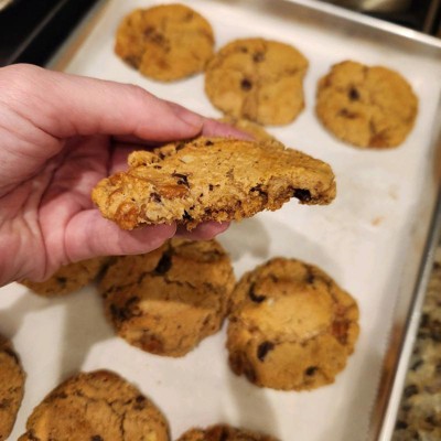 This Silo frozen cookie dough produces a cookie with a soft center and crisp edges. The flavor was good and the cookie was tasty, but I couldn’t really taste the peanut butter flavor or the walnuts. The cookie essentially tasted like an oatmeal and chocolate chip cookie. The product is so convenient because I can just make a few cookies at a time and put the remaining dough back in the freezer. It would be helpful if the plastic wrapper inside the box had a ziplock closure to keep the dough fresh between baking sessions.