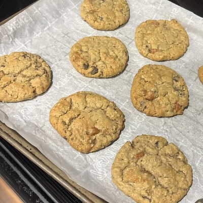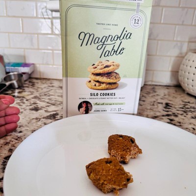 The Magnolia Table Silo Cookies Frozen Cookies are delicious! Or, I should say *were* delicious! They are a generous sized cookie, and the perfect amount for the four of us (2 adults, 2 tweens) to have a sweet after dinner treat. I normally don't like chocolate and peanut butter together as a flavor profile, but with the oatmeal and walnuts, I really enjoyed them. Clean up was a CINCH! The ONLY reason that I gave these 4 stars is the packaging. When I was taking the cookies out of the tray I had 3 tiny pieces of the plastic tray break/crack and stick to the cookies. I caught them before baking, but I hope MT fixes this issue, because the cookies are delicious.