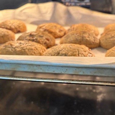 I was skeptical trying these cookies with all the different ingredients. To my pleasant surprise they were delicious. The walnuts add a nice extra flavor. But you can’t tell there are nuts in them - which I personally like. I’d rather the flavor without the crunch. They came out light golden with a soft center.