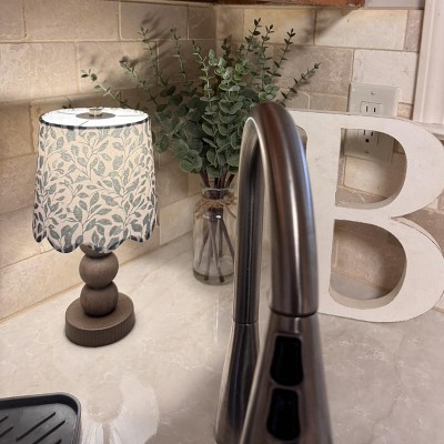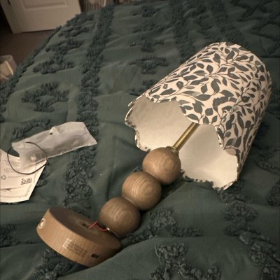 I loved the style of this lamp and the scalloped detail on the shade is adorable! The color of the leaf pattern is very beautiful however my shipment was delayed and when it finally arrived it was poorly packaged! There was only one small sheet of packing paper and it wasn’t even wrapped around the lamp! The shipping box was way too large for the lamp so it wasn’t even wrapped just rattling around loose in the box! The base of the lamp is extremely loose. Also it’s not a wood lamp it a faux wood plastic material. For $25 and how small this lamp is I was expecting much higher quality of materials! I noticed a few days after I ordered the lamp, it went on sale. Tried to call for a price match for the slightly lower price and I was told because it was “clearance pricing” that they aren’t able to price match! It was less than $4 off and they wouldn’t even match that! After terrible delayed shipping, poorly packaged, overpriced, horrible quality materials and a bad customer service experience, Target wonders why they are losing so many customers?!! I’ve been a Target card holder for over a decade! I used to shop at Target every weeks usually multiple trips a week. Not anymore!