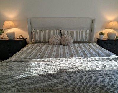 Sleep has been significantly enhanced since I've been using this bedding. The comforter feels luxuriously heavy and of excellent quality, providing a comforting and restful night's sleep. The green was slightly lighter than I imagined but still beautiful in the space.