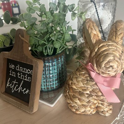 This is an adorable little bunny decoration for Easter or just even spring. As you can see it’s not much bigger than my hand that is an adult female hand. I think it’s so well priced and love that it’s got that woven wood look to it. I love this for on our built in shelves or even on a table centerpiece.