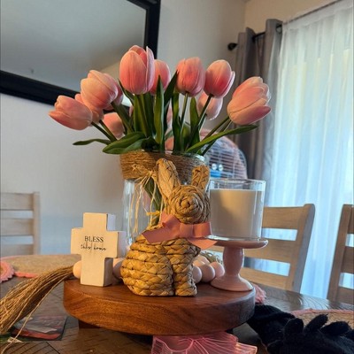 I absolutely love these woven bunnies. They are even bigger than I expected and the quality is fantastic. The detail is so charming, especially with one standing and one sitting, both wearing pretty pink bows. They are perfect for Easter but honestly look great all year long. I have already received so many compliments on them. They feel sturdy and well made, and I know I will be enjoying them as part of my decor for many years to come. Truly adorable pieces.