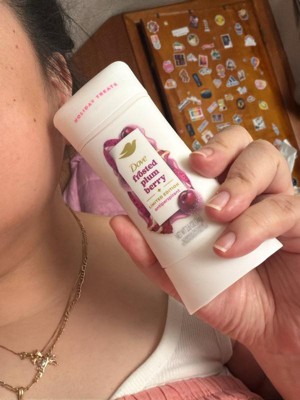 [This review was collected as part of a promotion.] Dove deodorant is my favorite. This glides on like butter and doesn’t leave cakey white residue on my armpits! I typically prefer floral scents for deodorant but this seasonal frosted plum berry scent is nice. I definitely get hints of berry but the notes are overall sweet to me, like a sugar cookie almost with berry secondary tones. Overall would definitely purchase in the future and would love to try different scents!