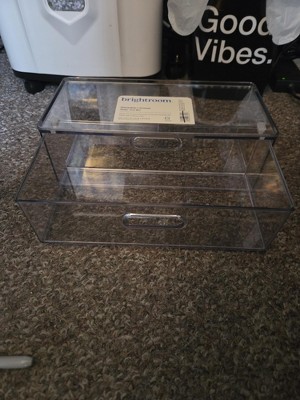 I received product reimbursement in exchange for my honest review. I just bought this drawer for my bathroom counter the other day, and it has been awesome for keeping my makeup and skincare nice and organized! I really like the half depth size and it fits perfectly on the counter, and it’s been perfect for holding foundations, palettes, and other beauty products without crowding the whole bathroom counter space. I also really like that it is sturdy and feels built to last. The drawer pulls out and glides smoothly without getting stuck(even when full). I also like the clear, clean look that lets me spot everything at a glance. Because I like this one so much, I am checking out other pieces from the Brightroom line to help me organize other spots around the house.This drawer keeps things tidy for everyday use. Its solid build and clean minimalist aesthetic make my counter look way less chaotic. I definitely recommend it to anyone who wants a solid storage bin.