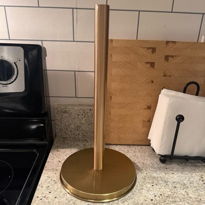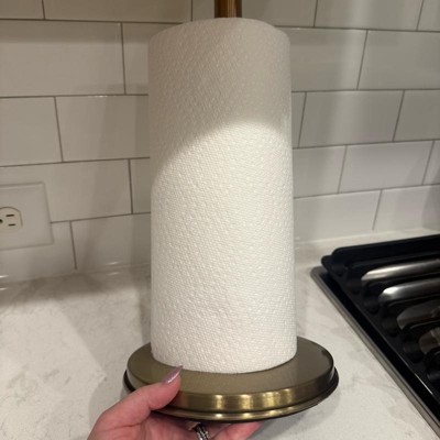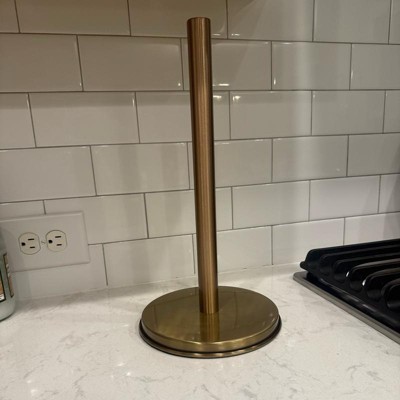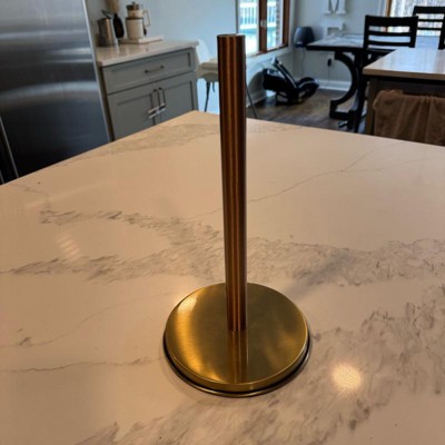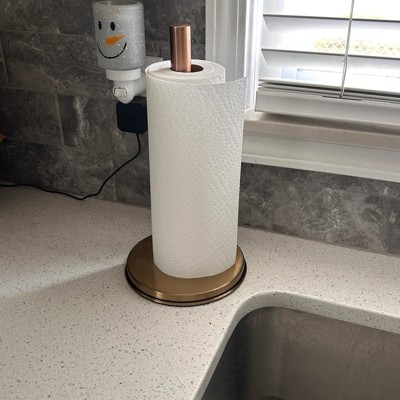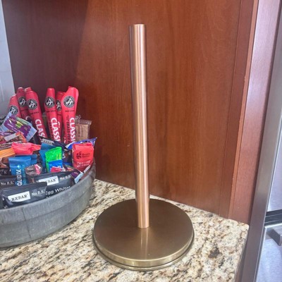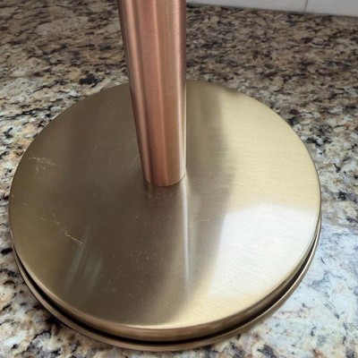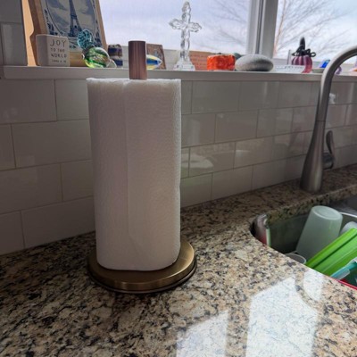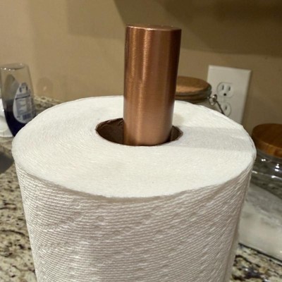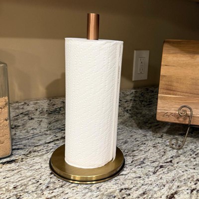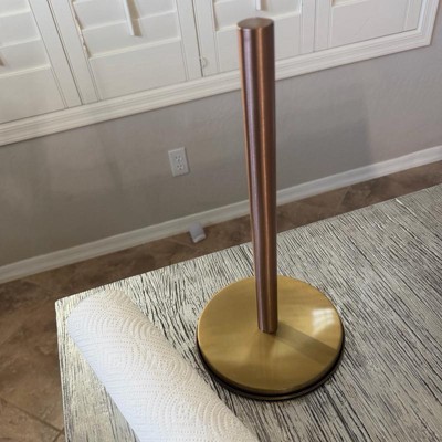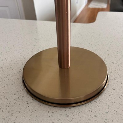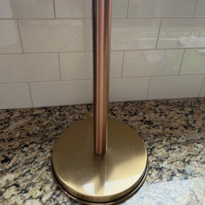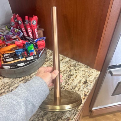 This paper towel holder was sturdier and heavier than I expected for the price point (in a good way!) I appreciated the way it upgraded my counter top. I do wish it had a way to sit more off the counter, but it is so beautiful in person that I can overlook that. I have been slowly incorporating more copper tones into my kitchen, and this is a beautiful addition.