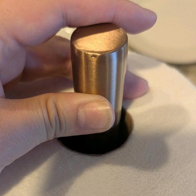 This metal paper towel holder by Hearth and Hand fitted in perfectly to my kitchen. The copper color is warm and it really looked great with the contrasting granite. It fits all sizes of paper towels and no assembly was required. It was stable and well made. It inspires me to seek out more copper items.