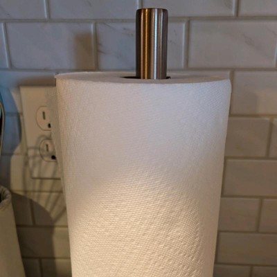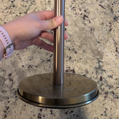 The sturdiness of this paper towel holder is really great however the finish scratches easily and arrived to me with several scratches on the base. The style and look of this is nice and modern and matches well with the other things on my counter but I am disappointed in how the finish looks before even using.