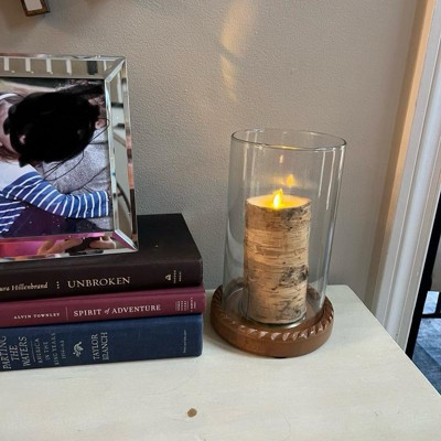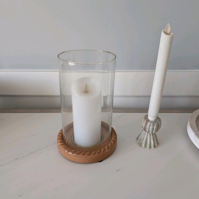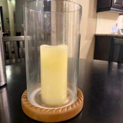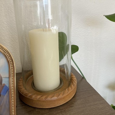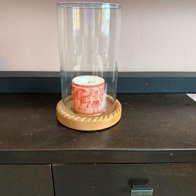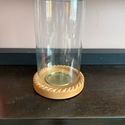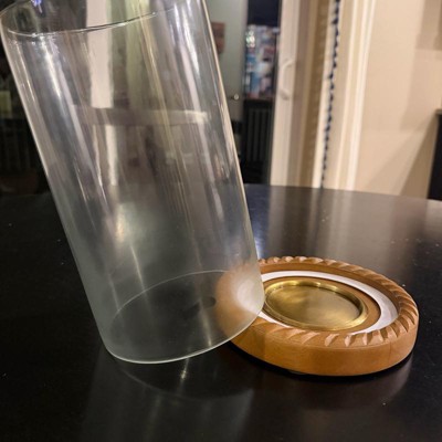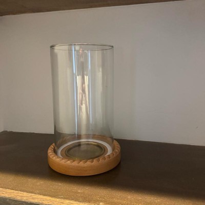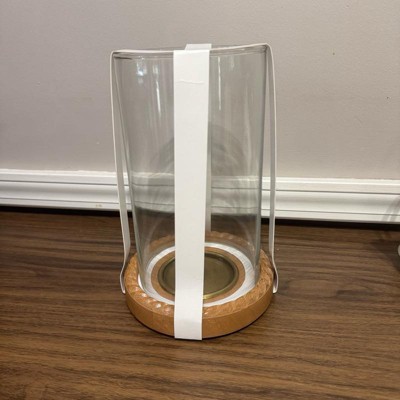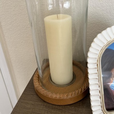 Small Wood and Glass Hurricane Candle Holder Tan - Threshold™ designed with Studio McGee