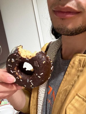 [This review was collected as part of a promotion.] This protein donut does not look like the photo on the front of the wrapper. It doesn't have as many sprinkles. The cake is very dry & not very chocolate-flavored. It had a weird fake sugar aftertaste that wasn't very appealing. The frosting didn't taste different from the rest of the cake.