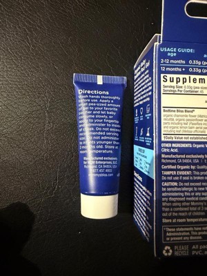 [This review was collected as part of a promotion.] Has calming ingredients, lemon balm, passion flower and chamomile. My little one is teething, gums are inflamed and she wouldn’t nap all day. Come bed time she was showing fussiness not wanting anything to touch near her mouth. Used a pea sized amount and she glaring took it, so the taste can’t be terrible. She didn’t whence with it, which I believe is due to it being a gel. It was probably slightly cool and the gel is a great option.. some oils just drip and we miss. Wish the packaging of the bottle had dosing guidance for quick reference. That’s the only recommend I give it.