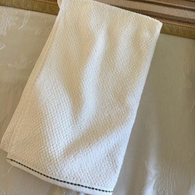 I love the color of this towel. It’s like a very clean white towel with a beautiful embroidery ending. The embroidery is so well done and give us a towel at an opulent look. The color makes it easy to fit in with your current Decor and it’s perfect with the four seasons of the year. The towel itself is very soft as well.