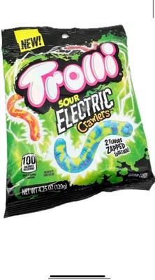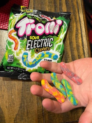 [This review was collected as part of a promotion.] I am in love with these Trolli Sour Electric Crawler gummy worms. Im not a fan of anythinggummy but i am when its these! As soon as I opened them, they were gone by my kids and I!