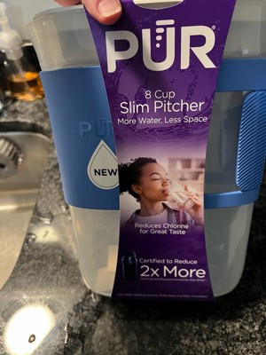 [This review was collected as part of a promotion.] I absolutely love PUR filters and use them all time. I even have a PUR filter installed directly on my faucet, so I already trust the brand and the quality of their filtration. The PUR 8Cup Slim Pitcher-Azure now sits on my countertop, and I actually love having it there because it reminds me to drink water throughout the day and stay consistent with my supplements and vitamins. It’s become part of my daily routine. The design is very convenient and slim, and the Azure color looks beautiful and modern. I also really appreciated the filter change stickers - they make it easy to keep track of when it’s time to replace the filter. Such a simple but helpful detail. The water tastes clean, fresh, and pleasant, with no strange smell or aftertaste. The only downside for me is the size. I personally would prefer a larger capacity. The 8-cup size turned out to be a bit too small for my needs - it’s not enough for a full day, and I have to refill it several times. Overall, I’m still very happy with it and would definitely recommend it, especially if you’re looking for a compact and reliable water filtration pitcher.