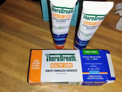 [This review was collected as part of a promotion.] My fiancé and I are already huge fans of the therabreath mouth washes. It’s been such a noticeable game changer for feeling fresh for hours without that stinging feeling that alcohol-based mouthwashes tend to have. The toothpaste is just as amazing. We love the minty flavor, the long lasting feeling of cleanliness and our gums are feeling healthy. Will def be buying time and time again.