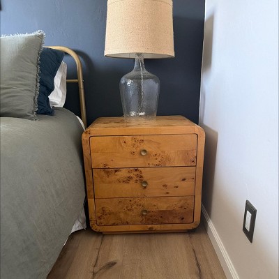 bali & pari Netra Real Burl Wood 3 Drawer Nightstand Light Mappa Burl