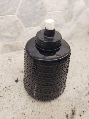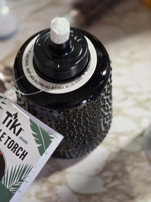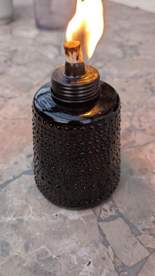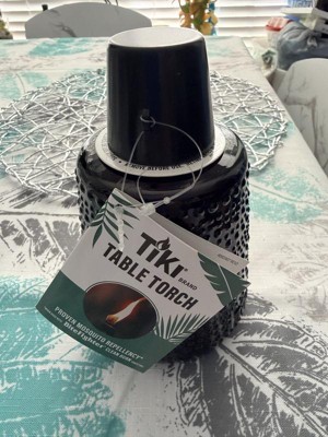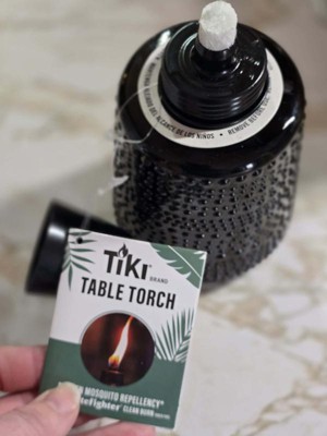 [This review was collected as part of a promotion.] I am absolutely in love with this beautiful Tiki brand table torch. The simple black carnival glass makes this a great addition to any outdoor event. Especially when paired with the TIKI Brand BiteFighter Clean Burn Torch Fuel! The only thing I have found that I didn't absolutely love about it is that the lid can be a bit difficult to screw back on as it keeps wanting to cross thread.