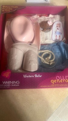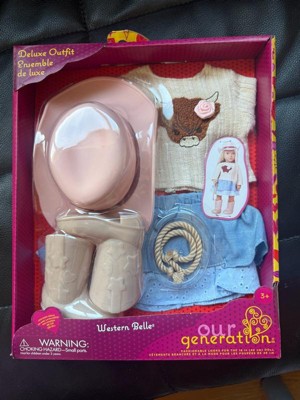 [This review was collected as part of a promotion.] Our Generation Dolls and accessories are so adorable. This Western Outfit is perfect for my daughter to put on her doll for the Rodeo. It was easy to put on the doll. The outfit came with boots, a hat and a rope. The whole set for Western wear.