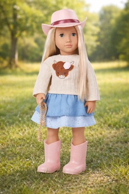 My daughter is obsessed with highland cows, so this outfit was an absolute must-have — she couldn’t get her hands on it fast enough! We ordered online and it shipped quickly, arriving within just a few days, which made her even more excited. The outfit is adorable and has such cute details. The pink cowboy hat being hard plastic is actually a great feature — it won’t get squished or lose its shape over time, which is a huge plus. The boots and accessories complete the look perfectly. This set is such a fun addition to our collection and is perfect for any little cowgirl. We love it!