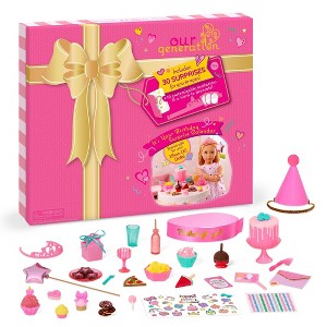 Turn their special day into a month-long celebration with the Our Generation It's Your Birthday Surprise Calendar for 18-inch dolls! The calendar is shaped like a giant gift box, with 30 surprise doors hiding inside. Open up a door each day to reveal gift after gift, including sweet treats, stickers, and fun party accessories to throw the ultimate bash. Plus, the surprises continue with bonus items like a child-sized tiara and 10 invitation cut-outs to decorate! Makes a great gift for kids ages 3 years old and up (small parts). Compatible with most 18-inch dolls and doll accessories. Our Generation dolls sold separately.