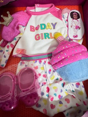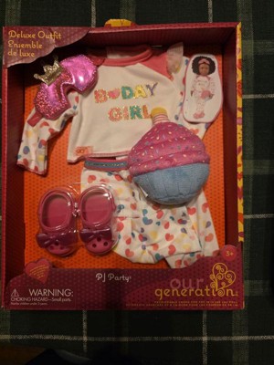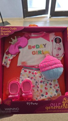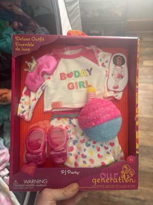 [This review was collected as part of a promotion.] My daughter absolutely loves her Our Generation Deluxe Birthday Pajamas Outfit. She was able to dress her doll up easily with the velcro, although she doesn't own an Our Generation doll yet. The outfit fit her American Girl doll perfectly. The outfit set came with a shirt, pants, sleeping mask, Croc shoes, and a cute cupcake pillow. All the materials are soft and are made of great quality. This is definitely a must-have outfit if your child loves dolls. Overall, everything from the packaging, delicate features, and intricately designed clothing is remarkably exceptional and showcases the dedication put into its creation. The quality of the materials used really stands out, ensuring that it will definitely continue to withstand hours of play and last for years.