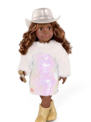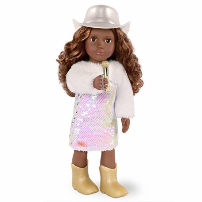 [This review was collected as part of a promotion.] This Our Generation country singer doll is so cute. She has the cutest outfit with hat and microphone that she can hold. Her eyes also close when she is laying down. She is just the right size for my three year old. She loves this doll and likes to bring it with her everywhere.