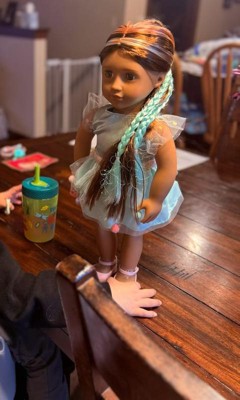 [This review was collected as part of a promotion.] My daughter loves her Our Generation doll. The doll hair is super soft and easy to style. My daughter loves the pink and blond color along with the blue braids as it’s some of the colors she’s had in her own hair. It’s the perfect height for little ones to sit the doll up and style her hair.